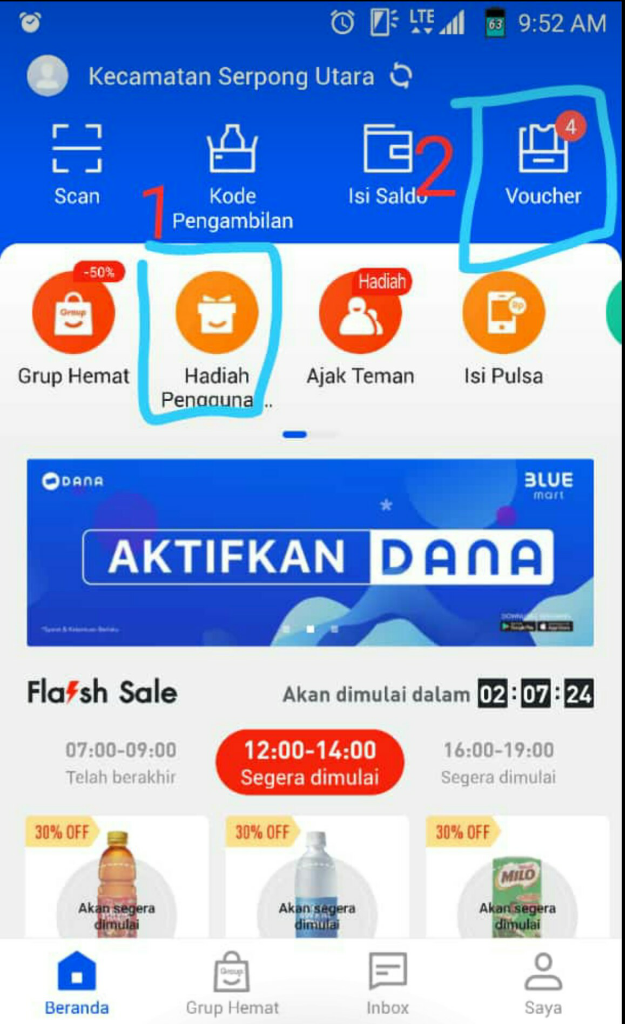 3.Setelah Sudah Terbuka Aplikasi Anda Cukup Mengklik Hadiah Pengguna Baru Dan akan timbul Voucher Seperti Gambar dibawah ini.